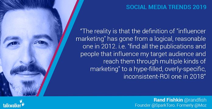 Con el uso de plataformas de marketing de influencers que hacen que esta corriente sea mucho más fácil, se espera que las marcas utilicen cada vez más las campañas de microinfluencers durante 2019, personas no tan conocidas como los grandes influencers pero que consigan un impacto relevante en su nicho. En cualquier caso, no todos los expertos son tan positivos respecto de este enfoque. Tal y como explica Rand Fishkin: